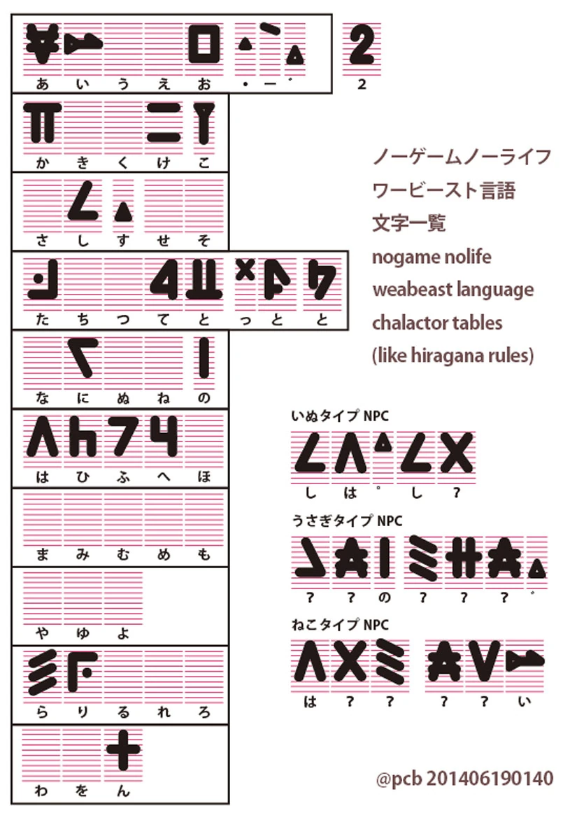 The Werebeast seem to also have their own language which characters correlate to hiragana characters.